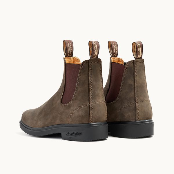 Material and specificationsMens dress boots in brown that go perfectly with a suit, or with jeans, on weekdays or weekends. These Blundstone boots are the right mix of fashion and comfort and look just as durable when new, as they do after many seasons of wear and tear.Rustic brown premium water-resistant leather